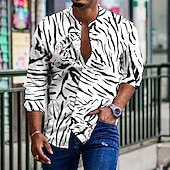 Men's Animal Tiger Shirt Button Up Shirt Long Sleeve Fashion Designer Casual Outdoor Vacation Daily Spring & Summer Stand Collar Print Button-Down Black-White Black White Red