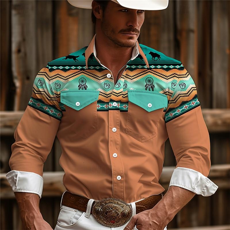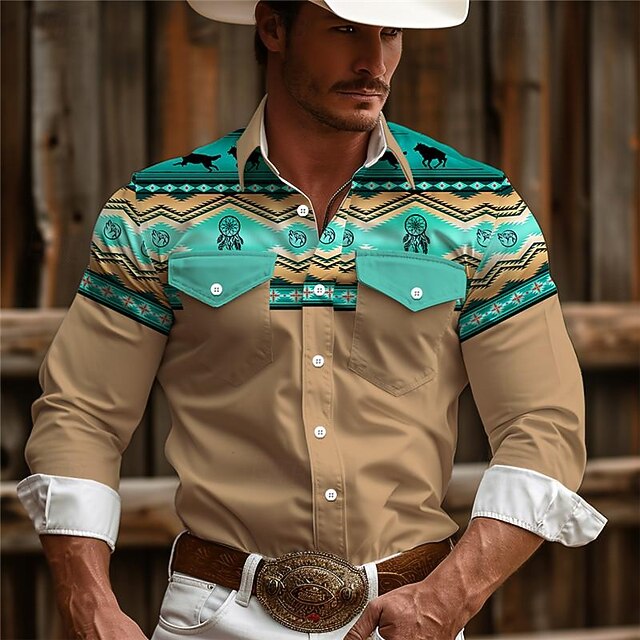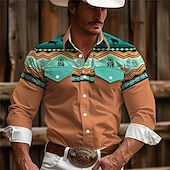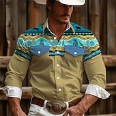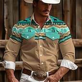 More information about Men's Cowboy Western Shirt Button Up Shirt Cowboy Shirt Long Sleeve Vintage Western Daily Wear Going out Weekend Spring Fall Winter Turndown Collared Shirts 3D Print Front Pocket Pink Green Khaki