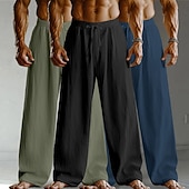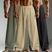 Men's Linen Pants Trousers Summer Pants Baggy Pants Drawstring Elastic Waist Straight Leg Plain Comfort Breathable Full Length Home Yoga Holiday Fashion Streetwear Black+White+Navy Blue 10