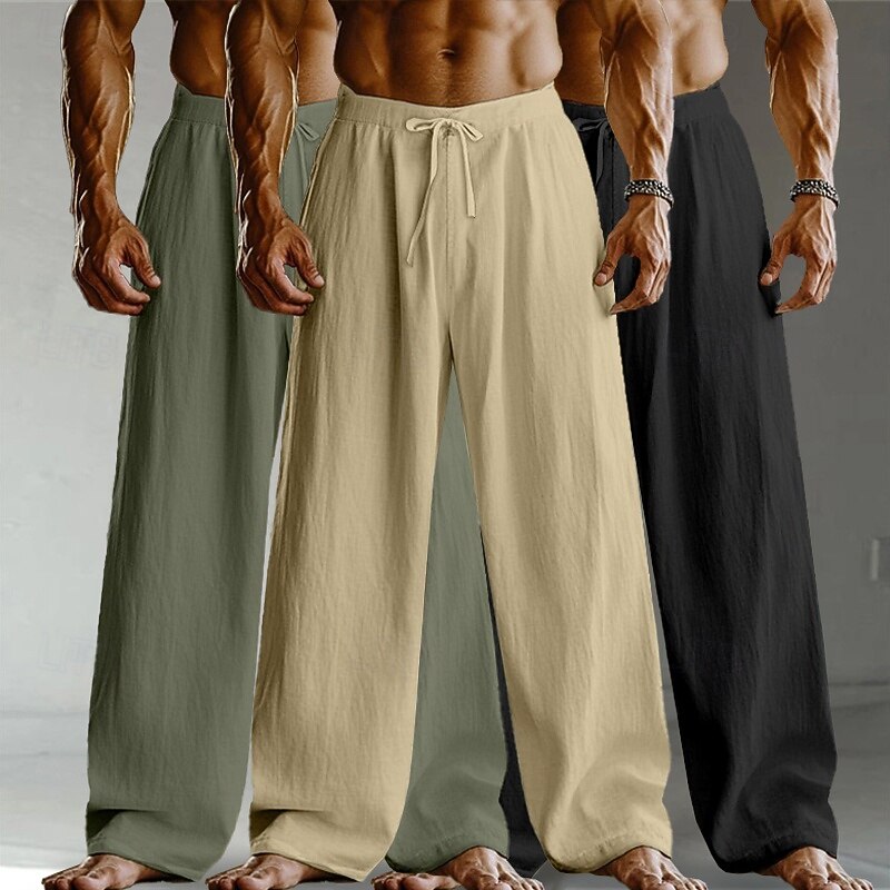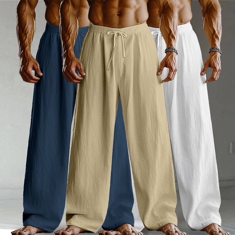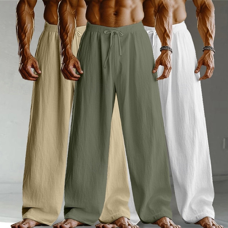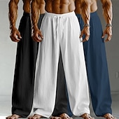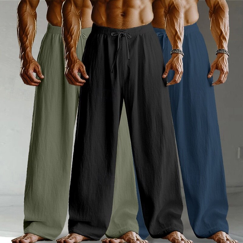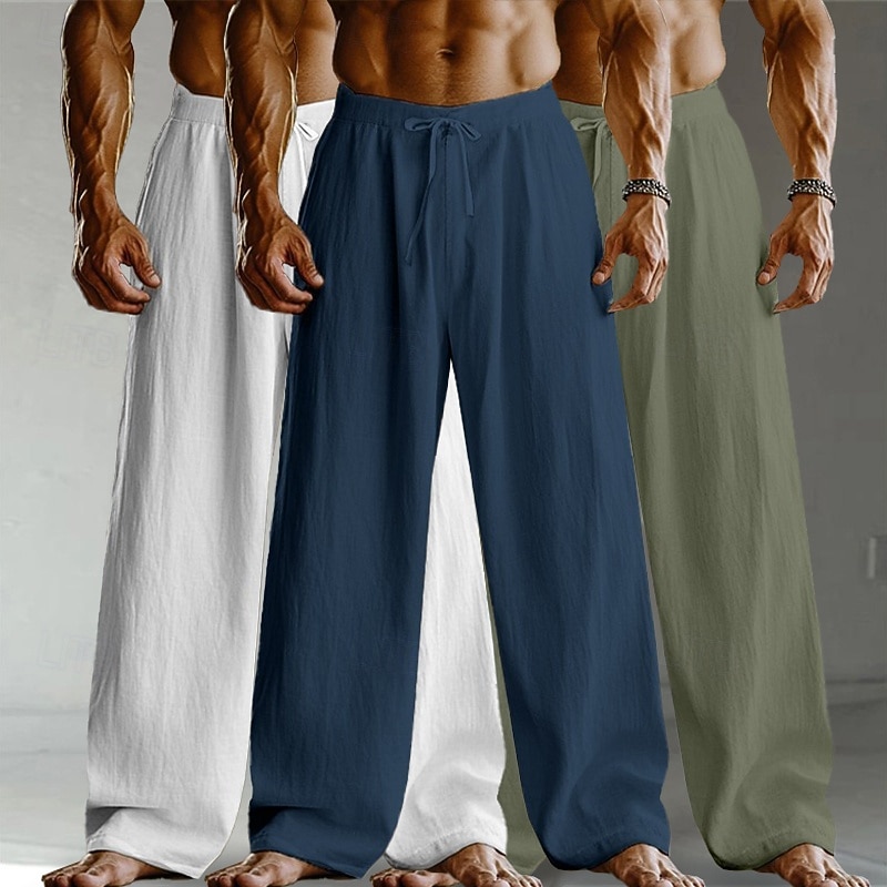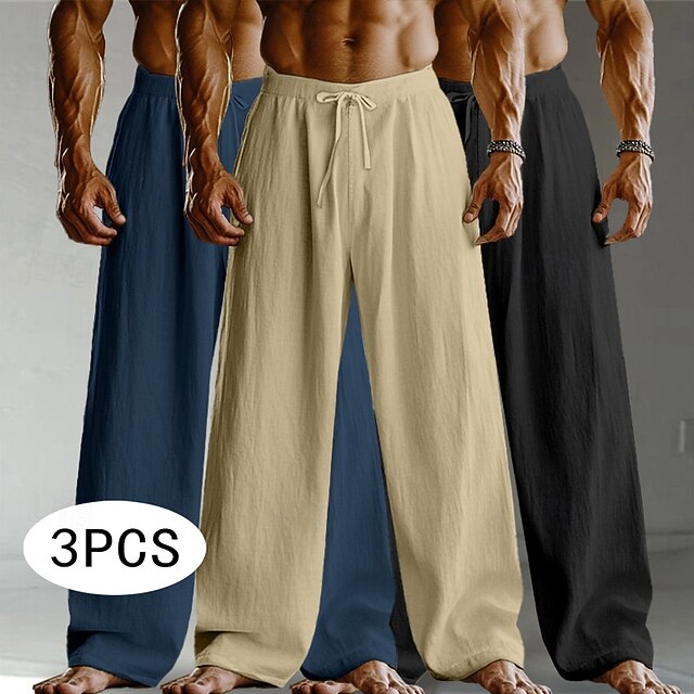 Men's Linen Pants Trousers Summer Pants Baggy Pants Drawstring Elastic Waist Straight Leg Plain Comfort Breathable Full Length Home Yoga Holiday Fashion Streetwear Black+White+Navy Blue 1
