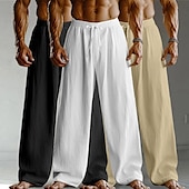 More information about Men's Linen Pants Trousers Summer Pants Baggy Pants Drawstring Elastic Waist Straight Leg Plain Comfort Breathable Full Length Home Yoga Holiday Fashion Streetwear Black+White+Navy Blue