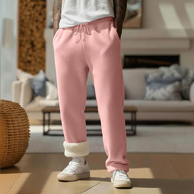 Men's Sweatpants Fleece Pants Trousers Winter Pants Drawstring Pocket Elastic Waist Solid Color Plain Comfort Warm Full Length Outdoor Sports Outdoor Casual Vacation Fashion Black Pink Micro-elastic 17