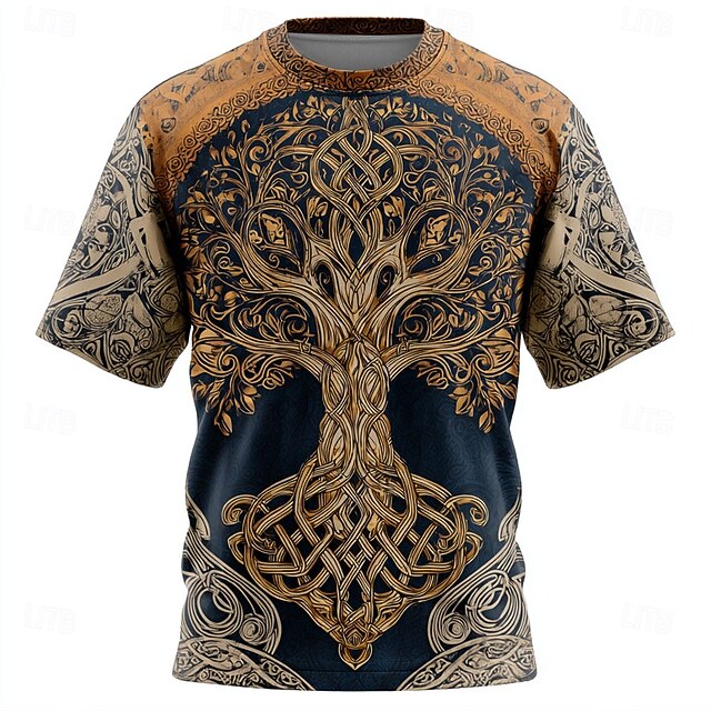 More information about Men's 3D Celtics Tree Of Life T Shirt Short Sleeve T shirt 3D Print Crew Neck Shirt Viking Designer Casual Party Street Blue Purple Brown Summer Spring Clothing Apparel S M L XL XXL XXXL