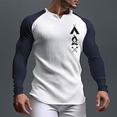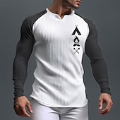 More information about Men's Graphic Flame Waffle Shirt T Shirt Raglan T Shirt Long Sleeve T shirt 3D Print V Neck Shirt Sports Daily Casual Sports Outdoor Holiday Going out Black White Navy Blue Spring & Fall Clothing