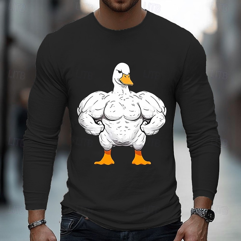 HOT ! Men's Funny Goose T Shirt Long Sleeve T shirt 3D Print Crew Neck Shirt Fashion Daily Street Casual Daily Black Blue Brown Summer Spring Clothing Apparel S M L XL XXL XXXL