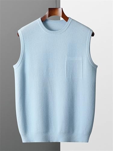 UIOKLMJH Men's Fall Winter Crew Neck Sleeveless Knitted Pullover Basic Casual Warm Solid Merino Wool Sweater Vest 7