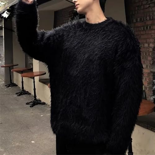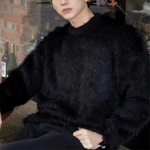 Winter Oversize Solid Color Knitted Jumpers Male O-Neck Sweater Tops Men Long Sleeve Warm Pullovers 4