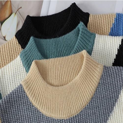 Cambkatl Men's Color Block Crewneck Sweaters, Cozy Winter Loose Fit Long Sleeve Casual Knitted Pullover Sweater Tops 7