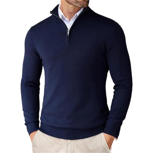 Rfmfkkg Men's Quarter Zip Up Sweaters Slim Fit Lightweight Mock Neck Pullover Sweaters Casual Knitted Jumper