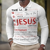 More information about Men's Jesus Christian Waffle Polo Shirts Golf Shirt Long Sleeve Polo Shirts Collared Shirts Casual Vacation Wear Party Outfits Buttons 3D Print White Navy Blue Green