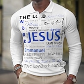 Men's Jesus Christian Waffle Polo Shirts Golf Shirt Long Sleeve Polo Shirts Collared Shirts Casual Vacation Wear Party Outfits Buttons 3D Print White Navy Blue Green 6