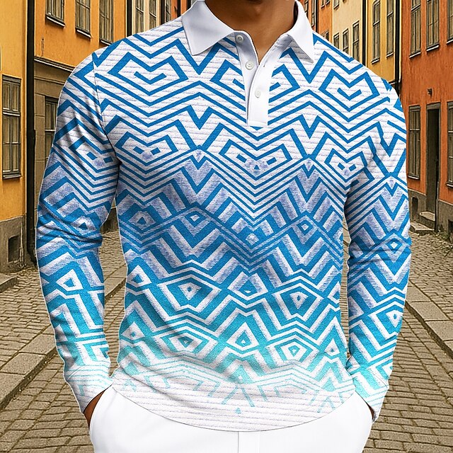Why Choose Men's Geometic Polo Long Sleeve Polo Shirts Lapel Casual Street Athleisure Daily Wear 3D Print Buttons Spring Fall Winter Blue Orange Green?