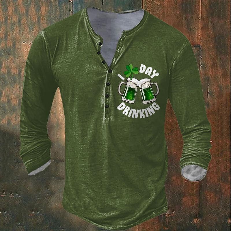 $24.99 - St. Patrick st paddys Shamrock Beer Men's Casual 3D Print T shirt Tee Henley Shirt Holiday Going out St. Patrick T shirt Green Black Long Sleeve Henley Shirt Spring & Fall Clothing Apparel 2025. Shop for cheap St. Patrick's Day T shirts online? Buy at lightinthebox.com on sale today!