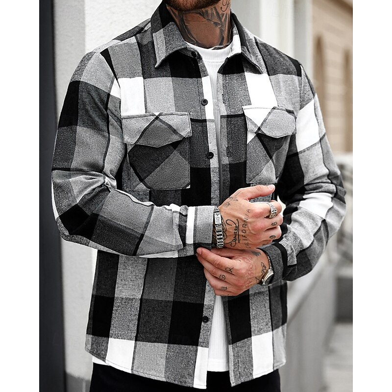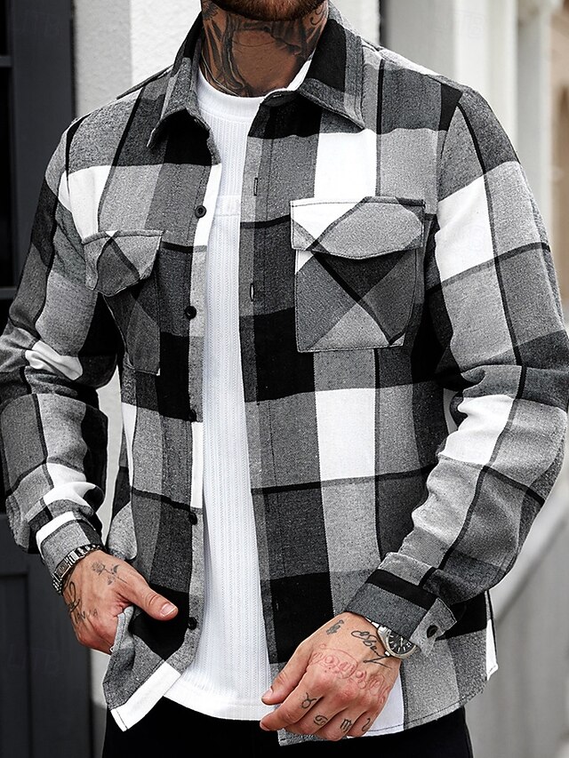 More information about Men's Lightweight Jacket Shirt Jacket Casual Jacket Shacket Vacation Daily Breathable Pocket Spring Fall Plaid Fashion Classic Lapel Regular Black Jacket