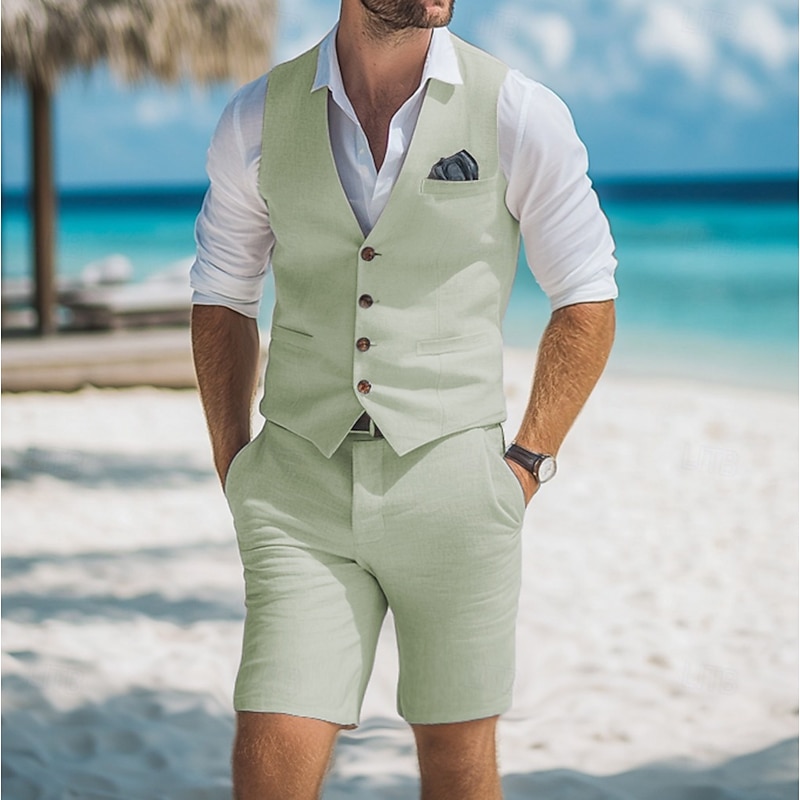 $75.99 - Men's Beach Wedding Linen Suits Sky Blue Sage Fashion Casual Solid Colored Standard Fit 2 Piece 2025. Shop for cheap Beach Suits online? Buy at lightinthebox.com on sale today!