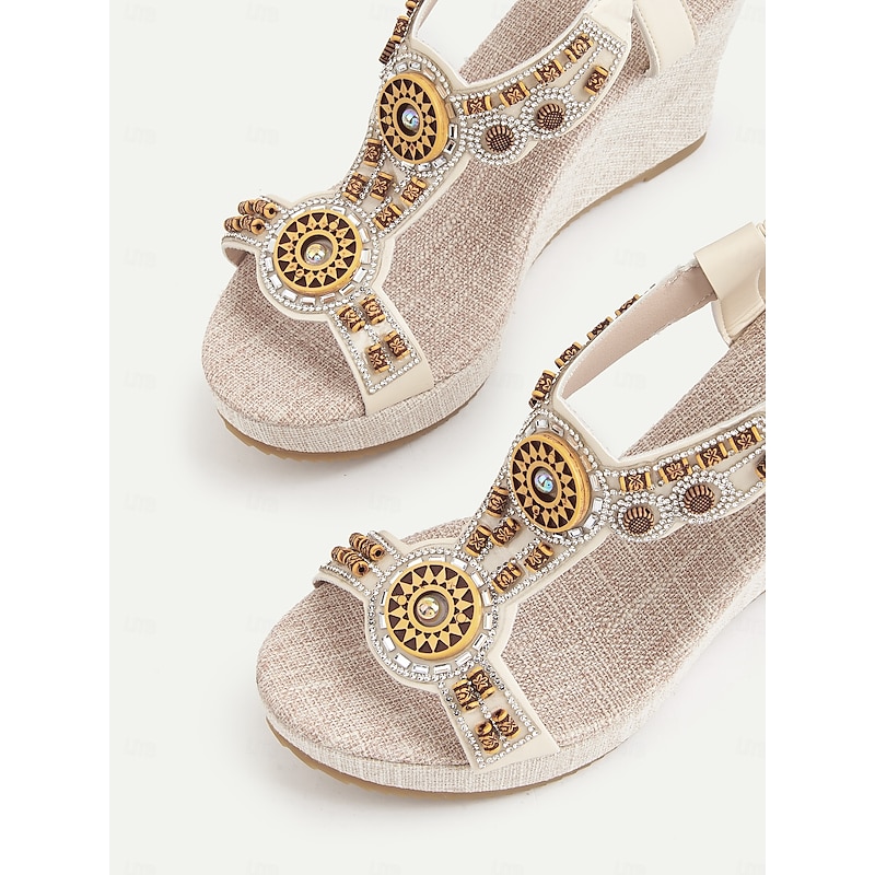 More information about Women's Beaded T-Strap Wedge Sandals – Elegant Bohemian Platform Shoes for Summer, Beach, and Vacation Wear