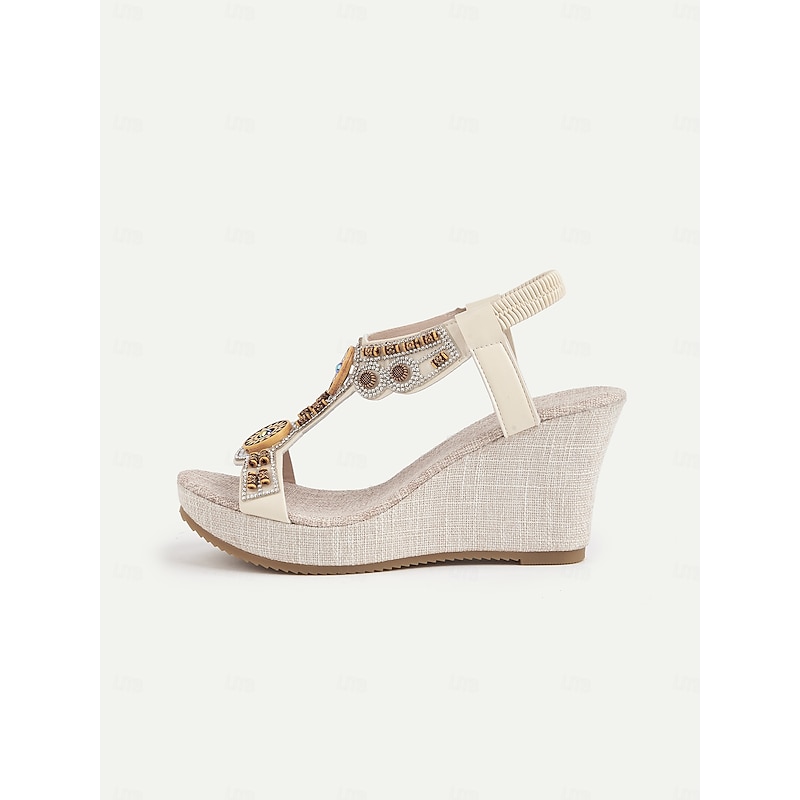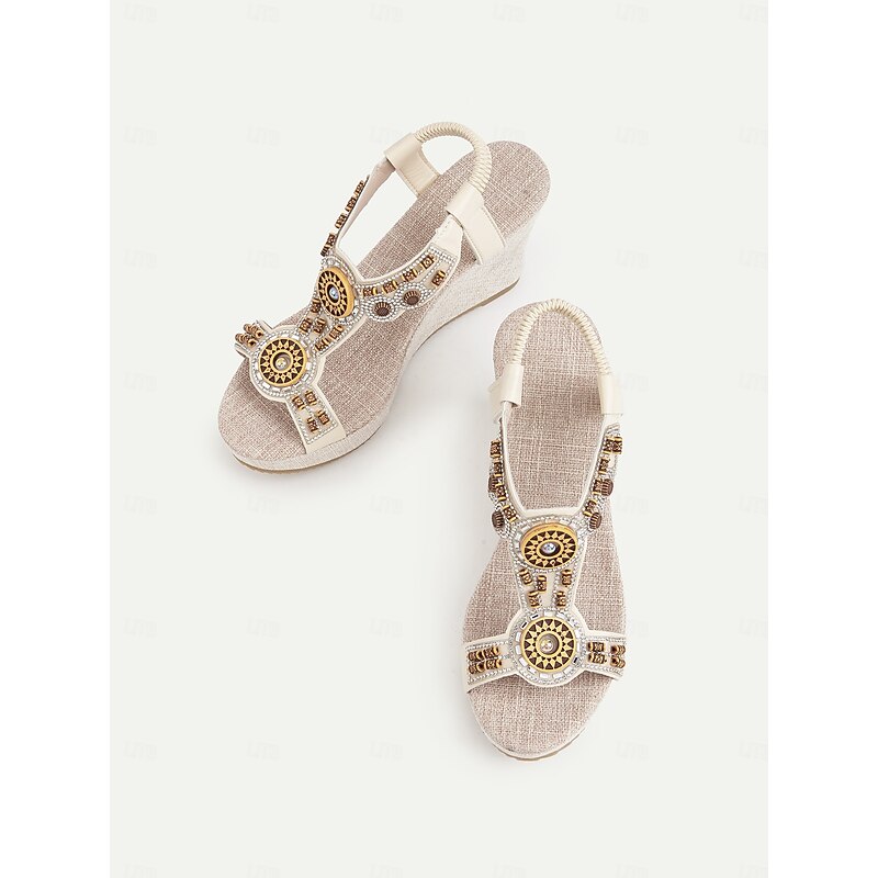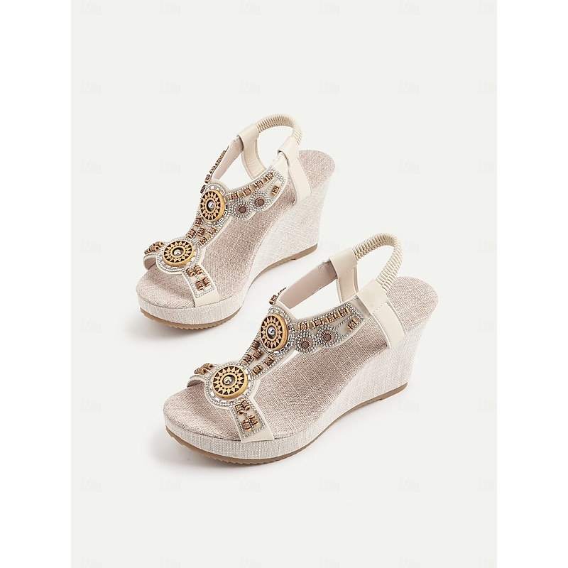 HOT ! Women's Beaded T-Strap Wedge Sandals – Elegant Bohemian Platform Shoes for Summer, Beach, and Vacation Wear