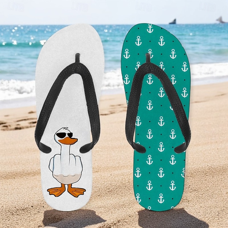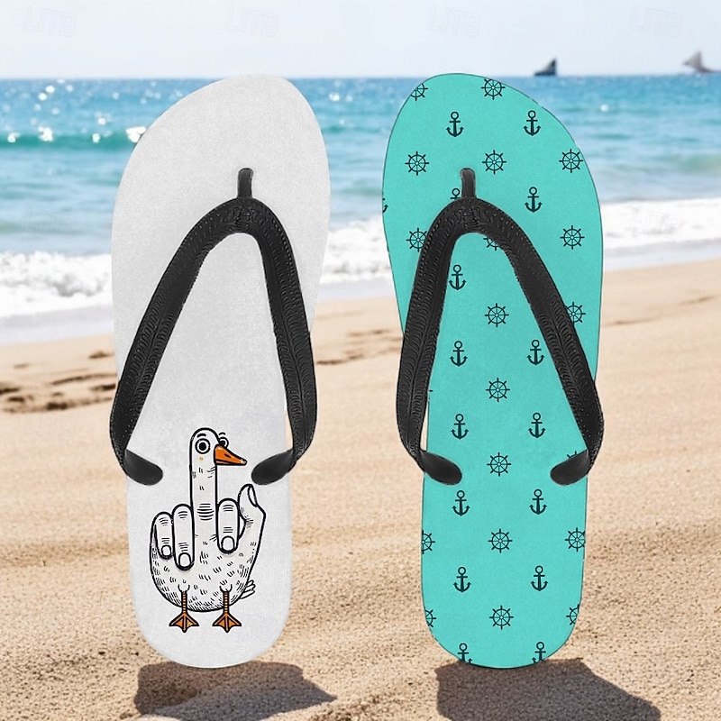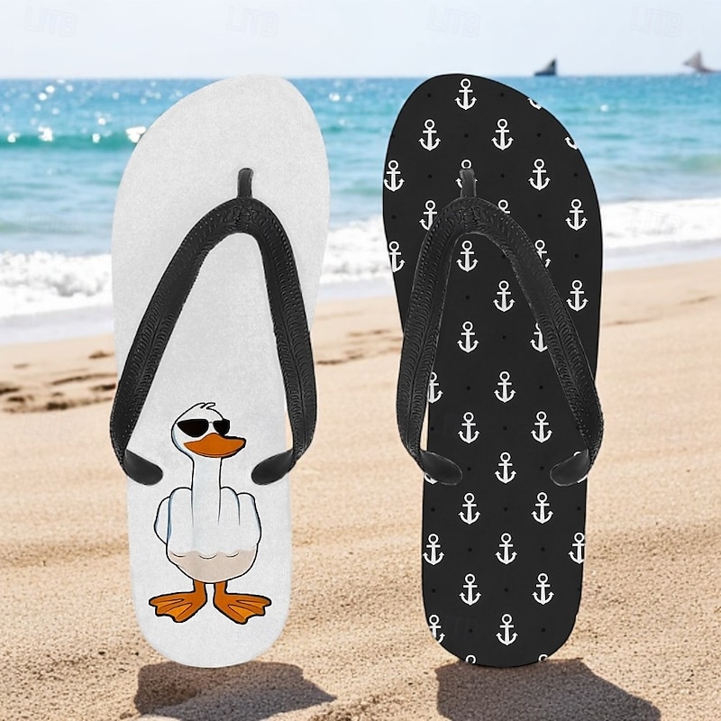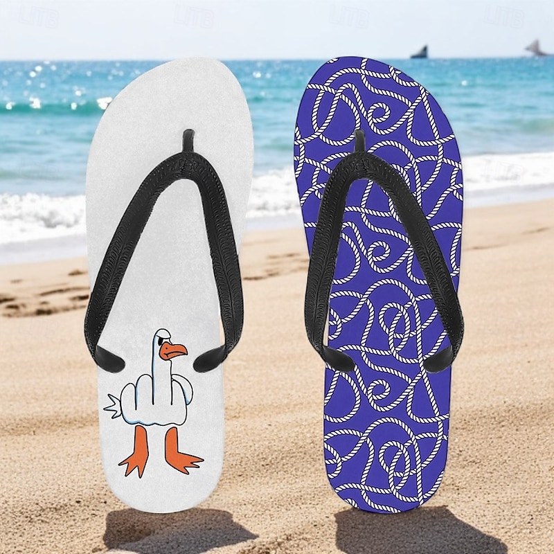 Men's Flip-flop Sandals with Goose Design and Rope Pattern – Laid-back Beach Style for Men during Beach Outings and Summer Activities 1