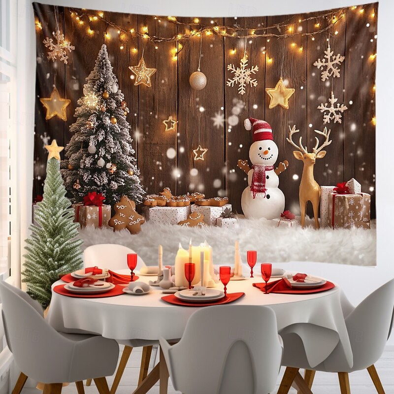 HOT ! Christmas Decorations Shinning Lights Effect Hanging Tapestry Wall Art Large Tapestry Mural Decor Photograph Backdrop Blanket Curtain Home Bedroom Living Room Decoration
