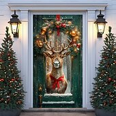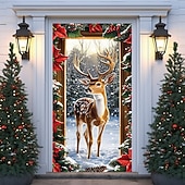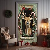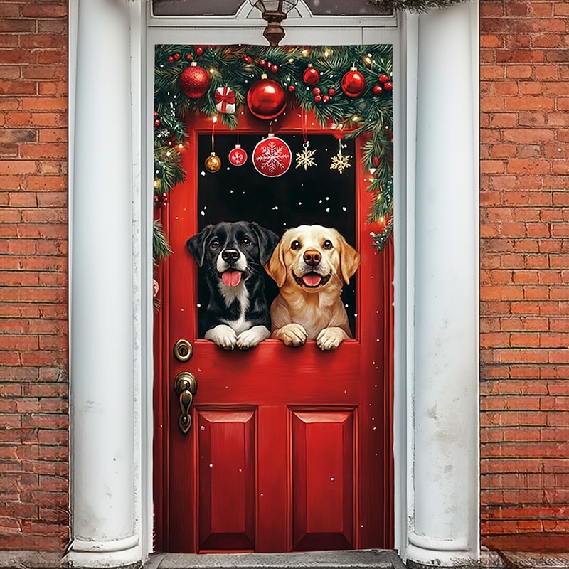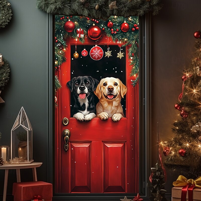 Christmas Door Decorations Door Covers Xmas Ornaments Animals Door Tapestry Door Curtain Decoration Backdrop Indoor/Outdoor Door Banner for Front Door Farmhouse Dog