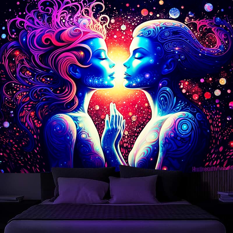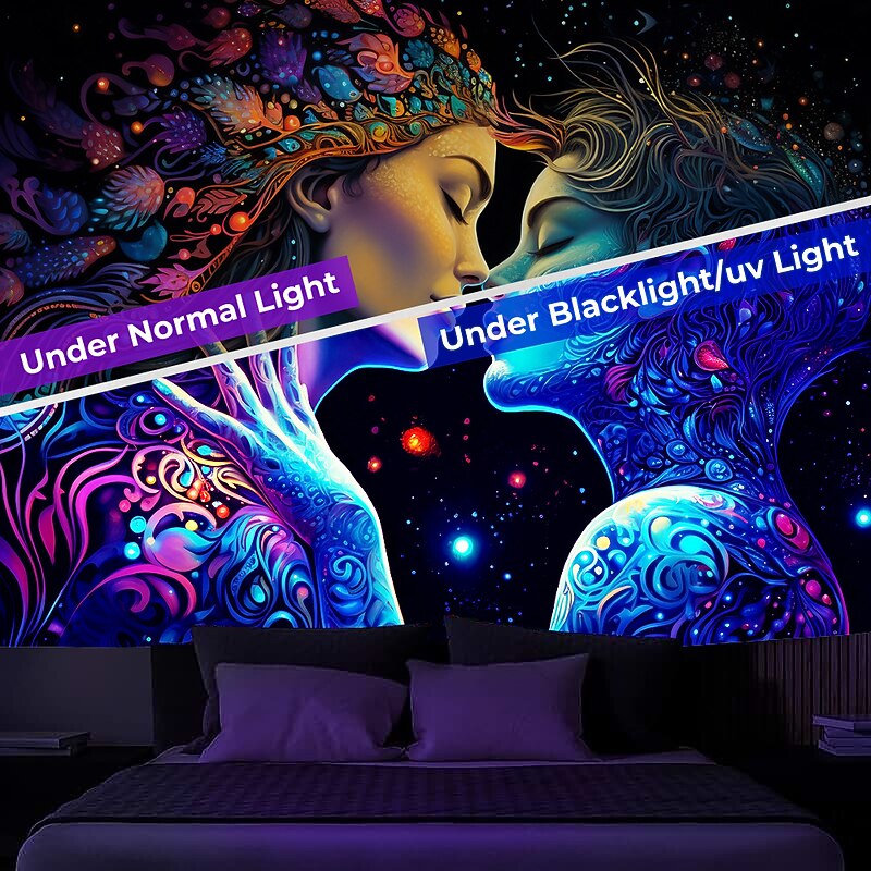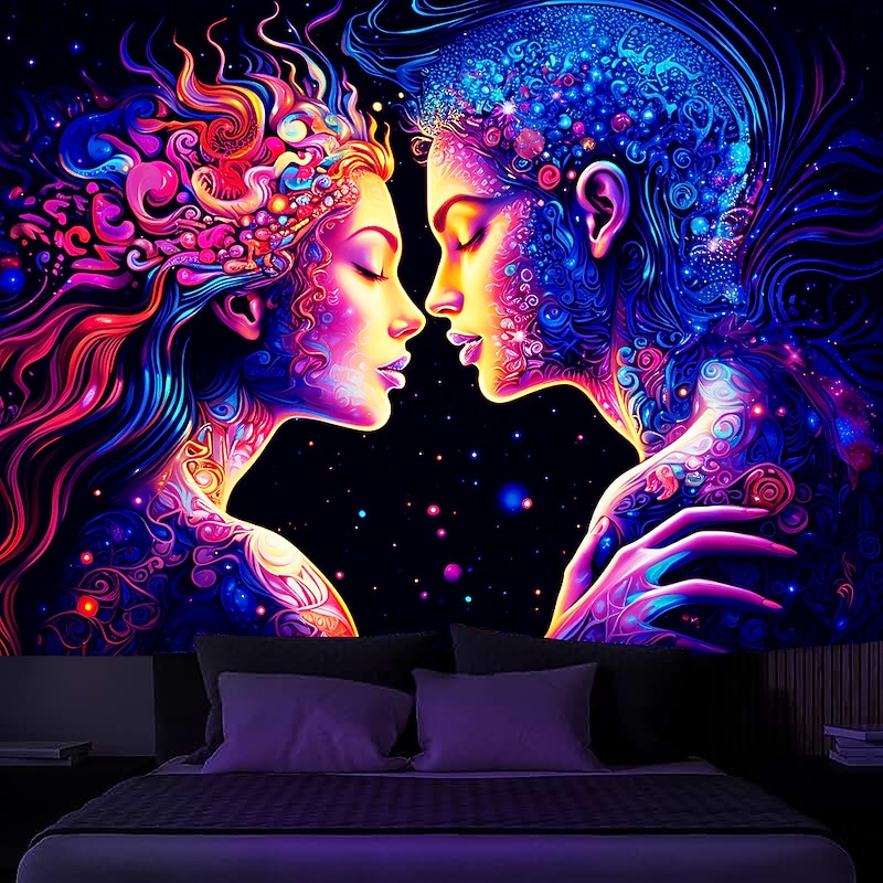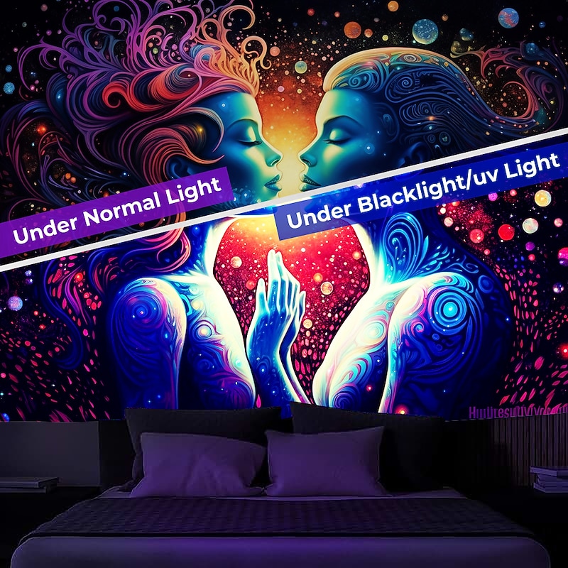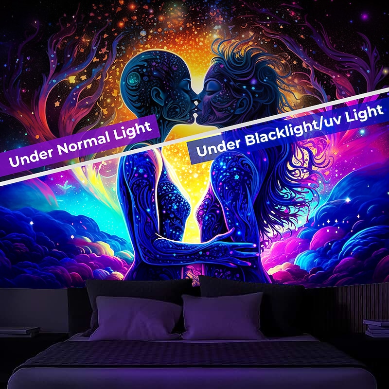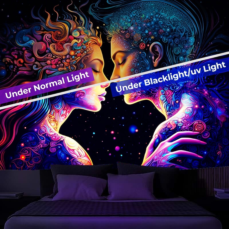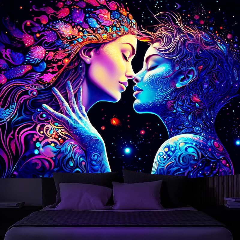 Blacklight Tapestry UV Reactive Glow in the Dark Glow Party Neon Trippy Misty Duel Women Hanging Tapestry Wall Art Mural for Living Room Bedroom