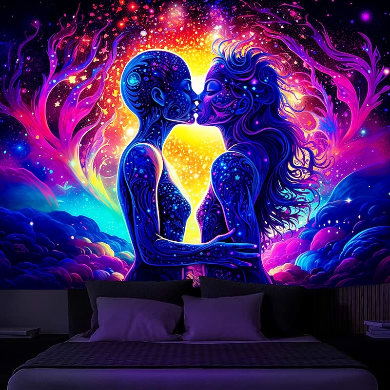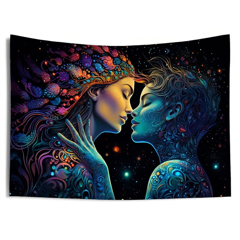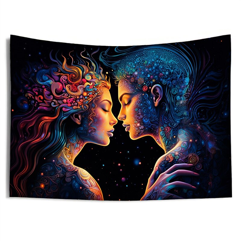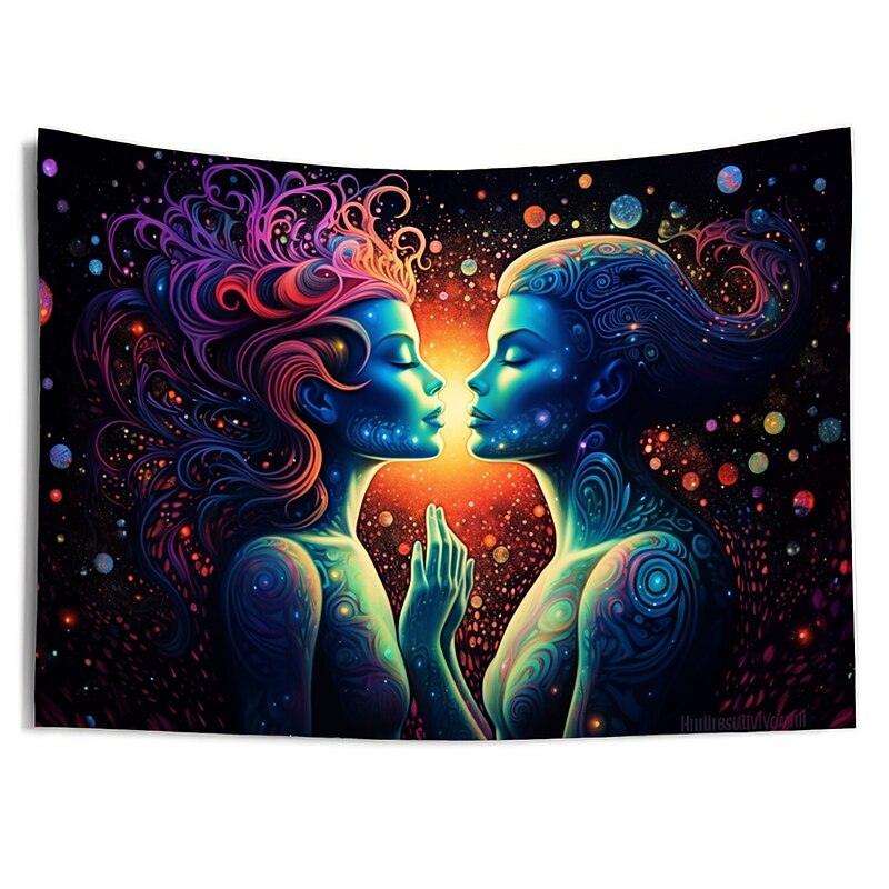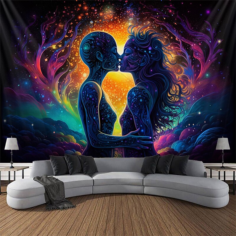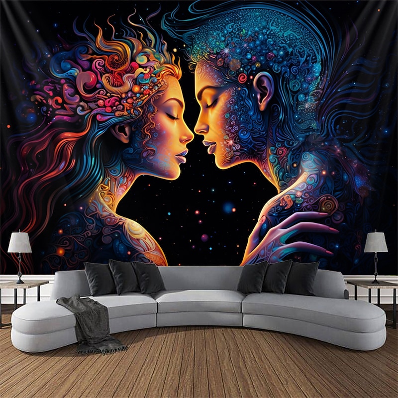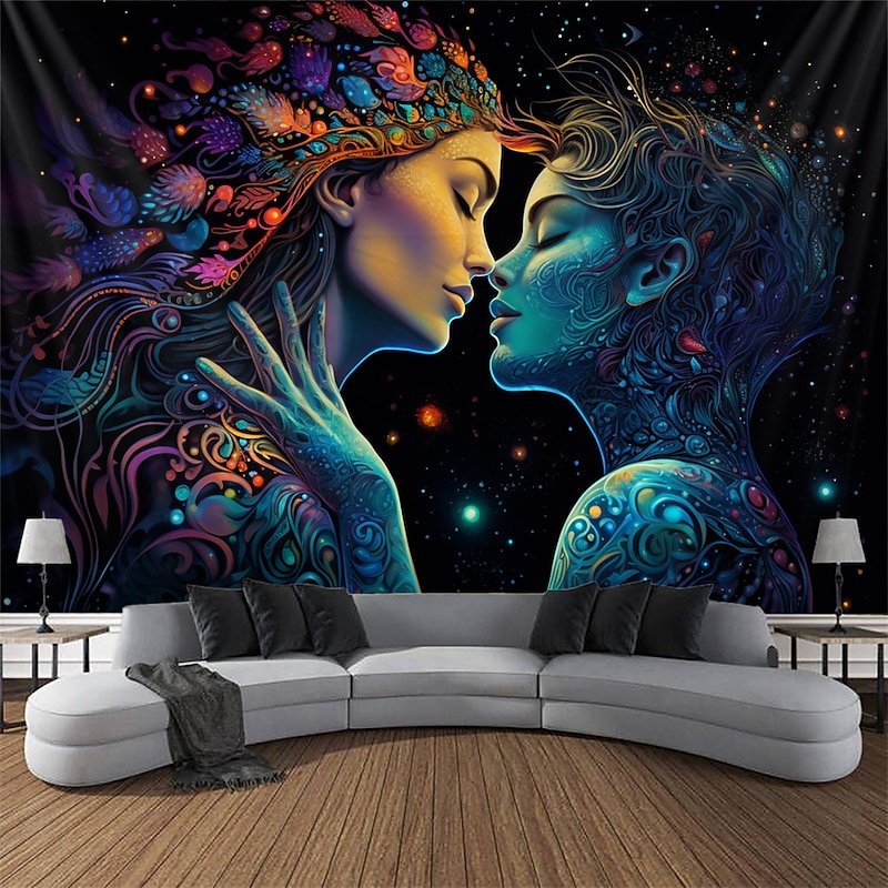 Blacklight Tapestry UV Reactive Glow in the Dark Glow Party Neon Trippy Misty Duel Women Hanging Tapestry Wall Art Mural for Living Room Bedroom