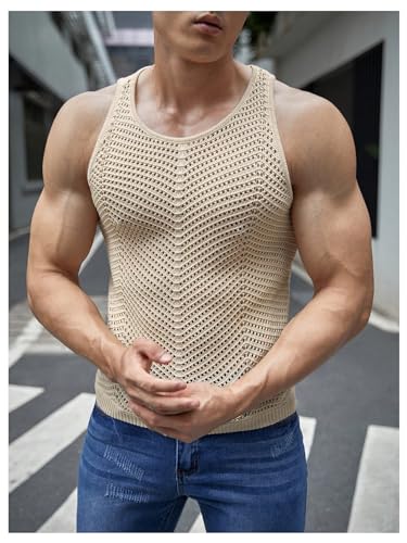 Floerns Men's Sleeveless Crew Neck Crochet Knit Sheer Tops Hollow Out Sweaters 6