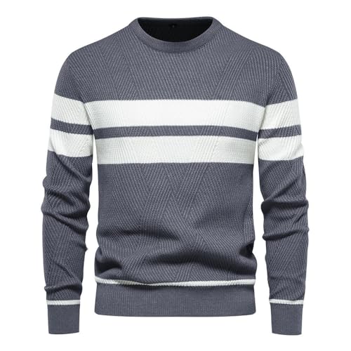 More information about Men's Autumn Winter Casual Color Block Striped Round Neck Pullover Sweater