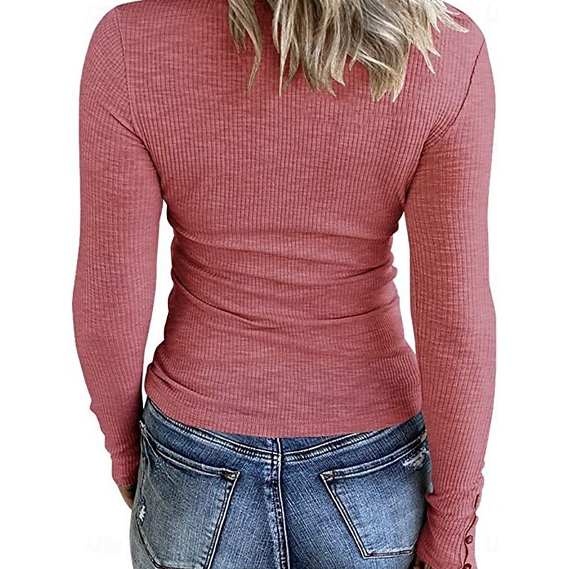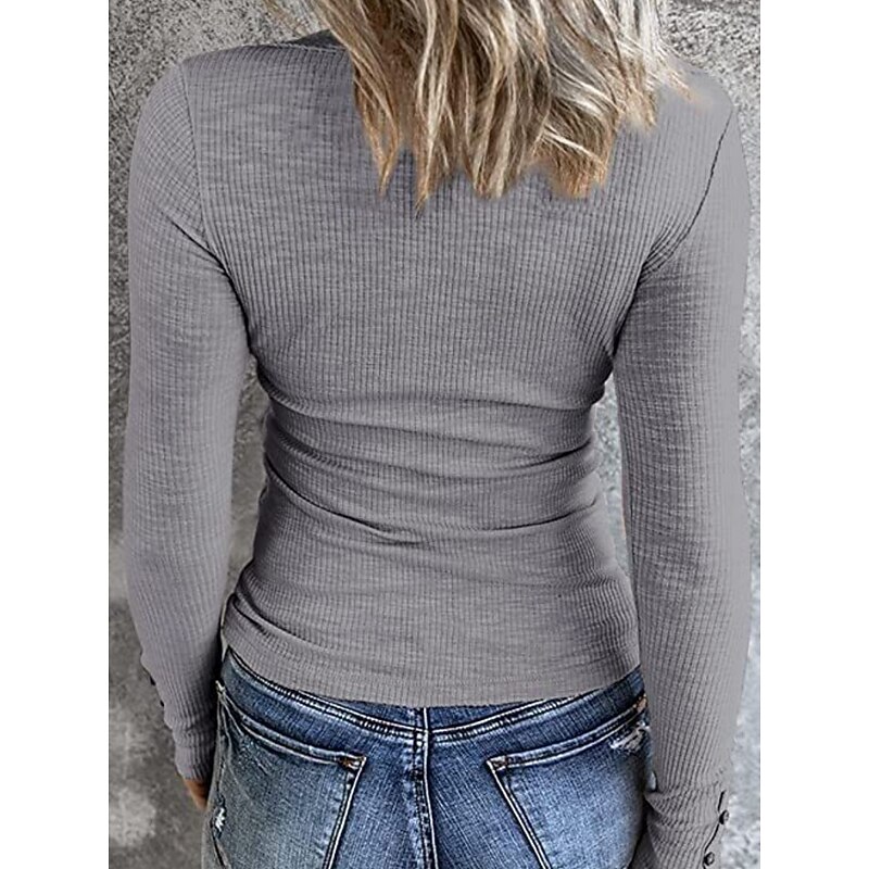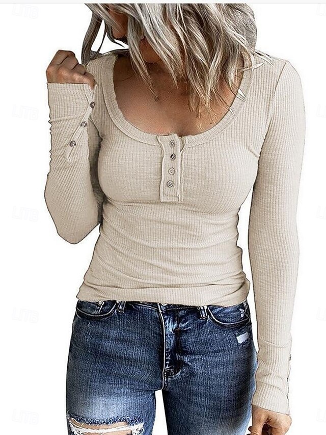 More information about Women's Blouse Solid Color Stylish Casual Long Sleeve Scoop Neck Regular Tops Daily Buttons Black Pink Apricot Gray Spring Fall Winter