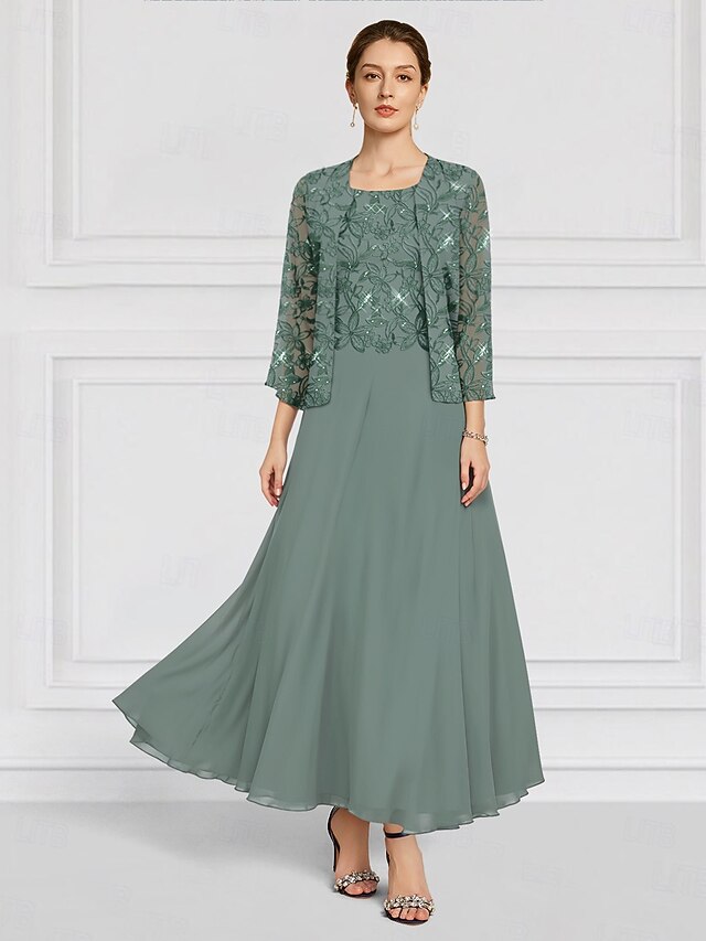 Why Choose Two Piece A-Line Mother of the Bride Dress Beaded Elegant Vintage Simple Crew Neck Ankle Length Lace Long Sleeve with Lace Embroidery?