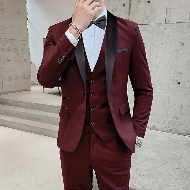 Why Choose Men's Wedding Party Tuxedos Dark Grey Burgundy Solid Color Standard Fit 3 Piece Single Breasted One-button?