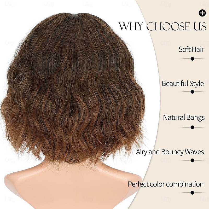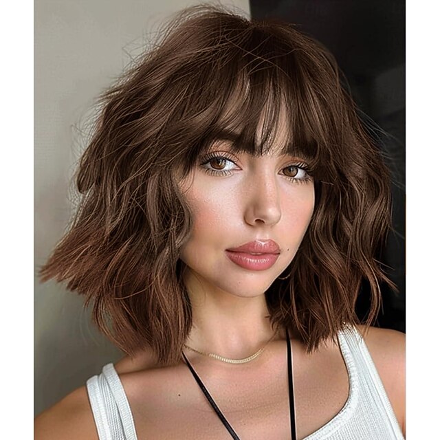 $16.49 - Brown to Auburn Wigs With Bangs Short Wavy Bob Wig for Women Synthetic Short Curly Wave Wigs Heat Resistant Fiber Hair Wigs for Daily 2025. Shop for cheap Synthetic Trendy Wigs online? Buy at lightinthebox.com on sale today!