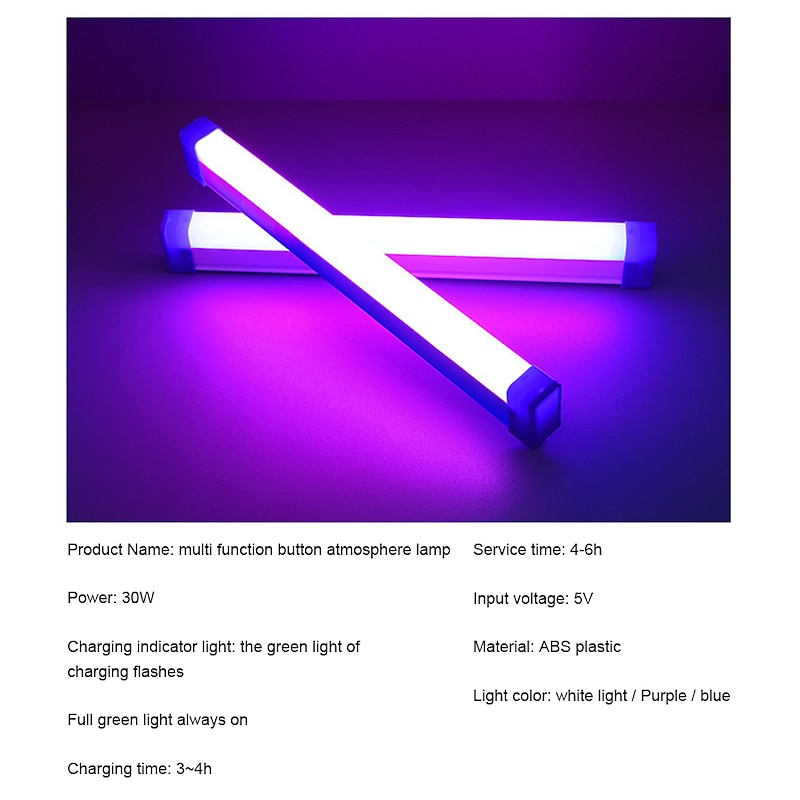 More information about 32/52CM strip atmosphere light USB rechargeable LED night light bedroom decoration light blue light purple light live broadcast atmosphere light background light