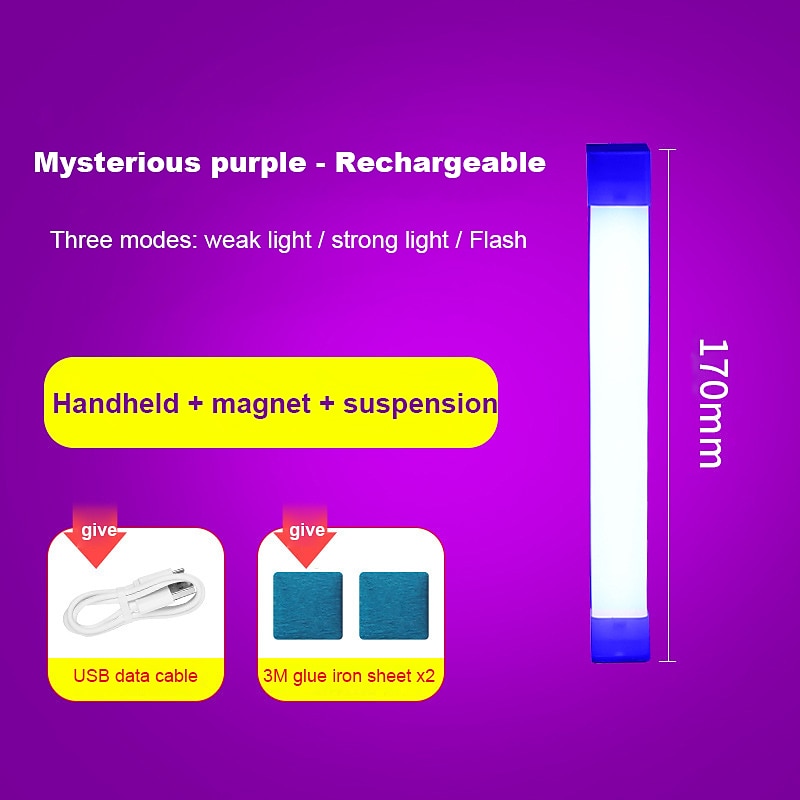 HOT ! 32/52CM strip atmosphere light USB rechargeable LED night light bedroom decoration light blue light purple light live broadcast atmosphere light background light