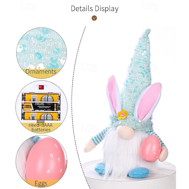 More information about Easter Light LED Deco Night Light Egg Shining Rabbit Doll Festive Indoor Decoration with AAA Battery Powered for Home Decorations 1pc