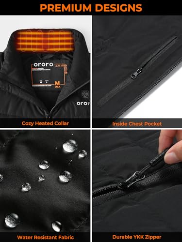 ORORO Men's Heated Down Vest with Battery, Lightweight Heated Vest with 800 Fill Down (Charger Not Included)
