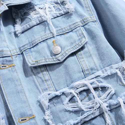 Men's Denim Jacket Ripped Slim Jean Jacket Streetwear Coat 7