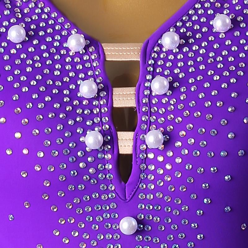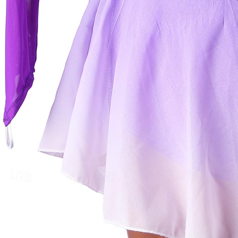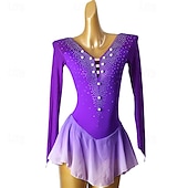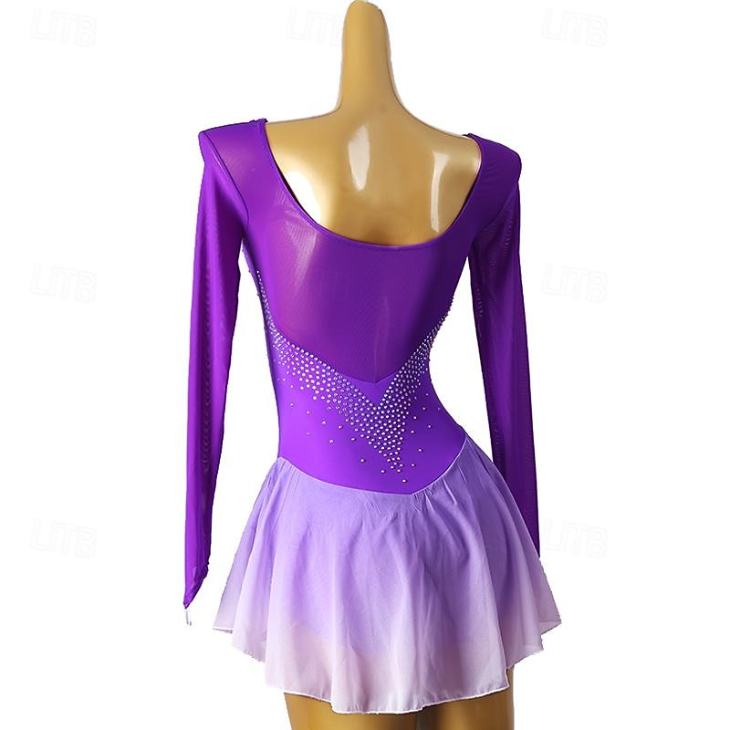 More information about Figure Skating Dress Women's Girls' Ice Skating Dress Violet Patchwork Open Back Mesh Spandex High Elasticity Training Practice Professional Skating Wear Classic Crystal / Rhinestone Long Sleeve Ice