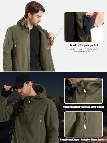 FREE SOLDIER Men's Fleece Jackets Full Zip Casual Outdoor Military Tactical Hoodie Jacket Windproof Warm Winter Coats