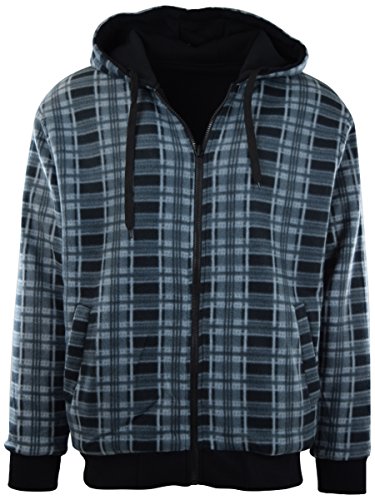 • COLOR 91033 - Mens full zipper hoodie with checker pattern fleece lining - 2 Pockets - Reversible (Medium weight material)