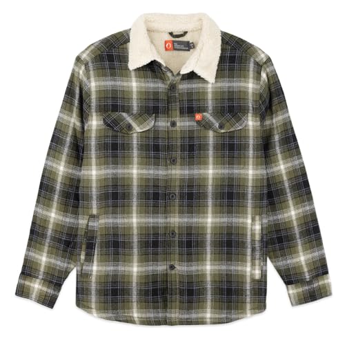HOT ! The American Outdoorsman Flannel Shirt Jacket with Sherpa Fleece Lining & Faux Sheepskin Collar - Winter Flannel Jacket