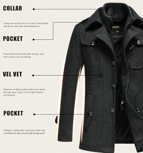 • [ Season ] Mens Cool Autumn Winter Thick Warm Mid-Length Thicken Trench Coat Wool Coat, Keeping Warm all the time