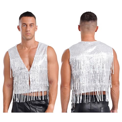 YiZYiF Men's Sequin Fringe Vest Sparkly Open Front Waistcoat Sleeveless Jackets Disco Vest Coat Tops 6
