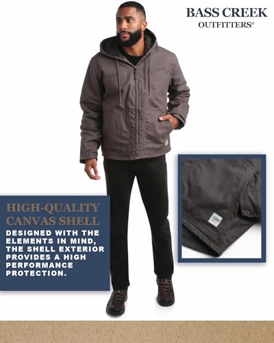 HOT ! Bass Creek Outfitters Mens Canvas Jacket - Heavy Duty Cotton Sherpa Lined Zip Up Duck Work Jackets for Men (Sizes M-XXL)