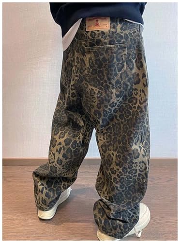 More information about Men's Leopard Print Cargo Jeans Vintage Denim Loose Fit Hip Hop Style Dance Skateboard Pants Harajuku Wide Leg Jeans