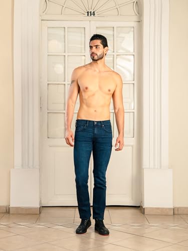 Men's Blue Slim Fit Jeans Modern and Comfortable Design, 98% Cotton 2% Elastane. Casual and Formal Style. 5