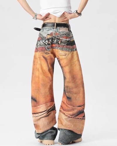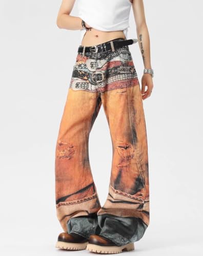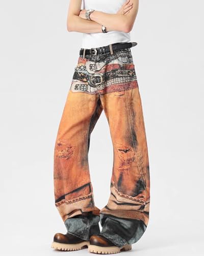Why Choose Y2k Unisex Vintage 3D Colorful Oil Multi Belt Print Baggy Jeans Hiphop Punk Grunge Ripped Loose Fit Casual Denim Pants?