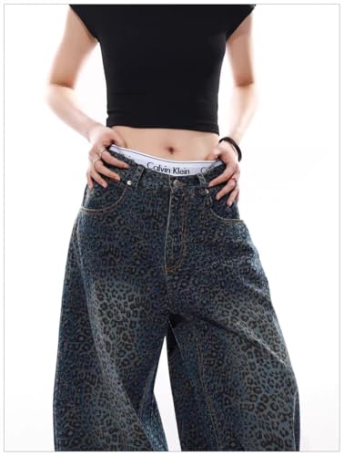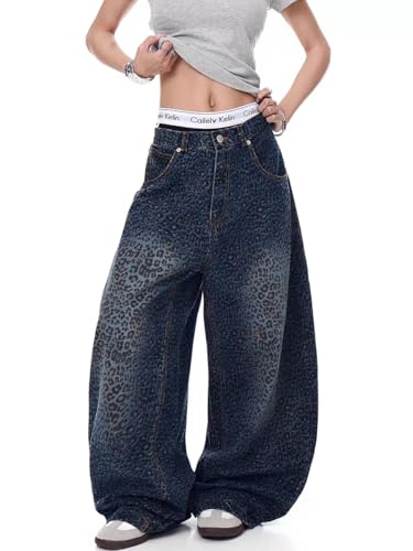 More information about Unisex Y2k 90S Vintage Gradient Leopard Print Baggy Wide Leg Jeans Hiphop Grunge Loose Casual Boyfriend Denim Pants