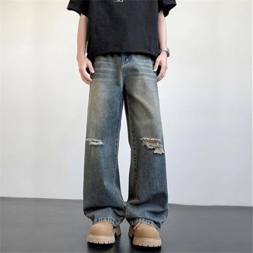 HOT ! Men's Vintage Loose Ripped Jeans Casual Hole Denim Pants