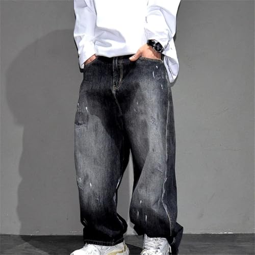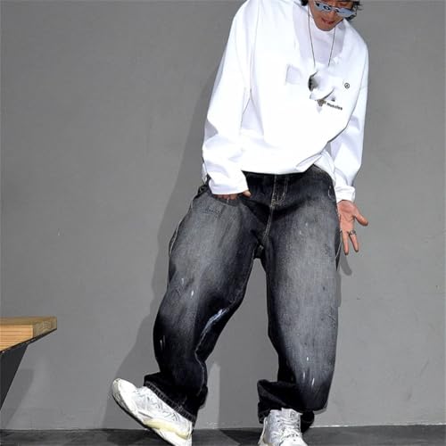 HOT ! Men Retro Ink-Wash Wide-Leg Streetwear Loose Straight Jeans